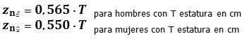 B y WD son las lecturas de la balanza (sin hombre y con hombre, respectivamente), Wc es el peso del hombre medido previamente en otra balanza y, d es la distancia conocida entre los dos pivotes, medida con una cinta métrica.Este valor real z debe compararse con la cota teórica de la fórmula de Guillén y Linares (2002):