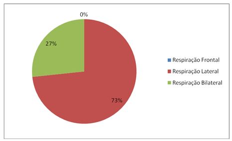 Após a aplicação do questionário analisei de acordo com as respostas, os percentuais de cada respiração. Entrando em comparação com os livros e artigos que afirmam que a técnica bilateral é a mais eficaz na aplicação do nado, enfatizando a força igual da realização das braçadas e pernadas, coordenação do nado e menor desgaste através da bilateral.
