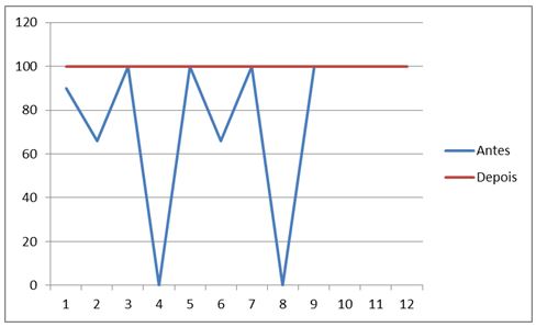 Tabela 2. A tabela abaixo demonstra os valores somados nos questionários dos 12 participantes depois do tratamento