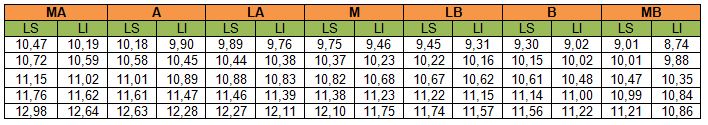 La observación de la tabla y nos permite considerar que en el sexo masculino los valores positivos se encuentran comprendidos:
