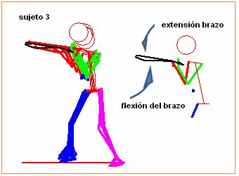 Por otro lado, el sujeto 1 es de todos el que más demora en realizar la máxima extensión del brazo para realizar el golpe, debido a errores que comete en el movimiento, que serán explicados posteriormente.