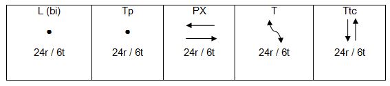 Lange (L (bi)): desde la posición inicial de parados, con las piernas unidas, las manos en la cintura, realizar una torsión del tronco quedando la pierna de apoyo semiflexionada y la otra extendida atrás apoyada en la punta del pie, volver a la posición inicial y luego hacer el movimiento para el otro lado.
