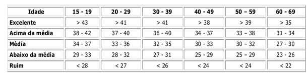 No pré-teste, 5% foram classificados com resultados excelente, 10% acima da média, 7% na média, 14% abaixo da média e 21% ruim. O baixo nível de flexibilidade na região lombar e da musculatura da região posterior da coxa podem desencadear dores lombares. Esse componente da aptidão física para a saúde é importante para garantir bem-estar, com menos dores, principalmente lombares, diminuindo o risco de lesões nas atividades físicas da vida diária (GLANER, 2007).