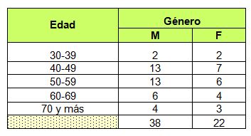 Predominó el sexo masculino en todas las edades, haciéndose más evidentes en las edades comprendidas entre 40 y 60 años (Cuadro 1).