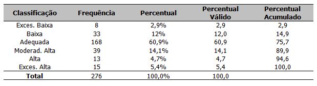 Tabela 3. Classificação do IMC da amostra segundo critérios de Must et al. (1991)