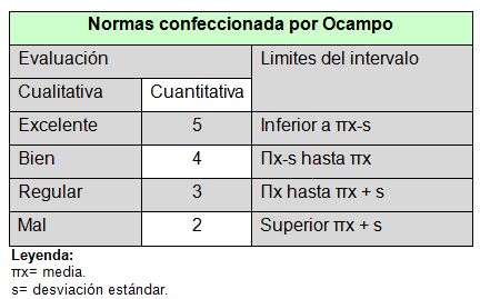 Esto nos permitió sacar las normas de evaluación por índices según la metodología de Ocampo (2005), donde utiliza niveles o clasificaciones cualitativas y cuantitativas de comportamiento de una población.