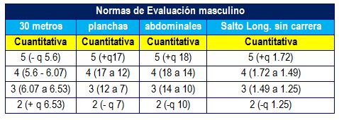 Las normas evaluativas (tabla 1 y 2) nos permitirá determina en que rango los aspirantes se encuentran en cada una de las pruebas y evaluarlos cuantitativamente.