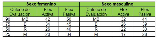 A partir de los registros obtenidos por los estudiantes en las pruebas de flexibilidad activa y pasiva, proponemos las siguientes tablas normativas para la evaluación de la flexibilidad activa y pasiva para los estudiantes de Secundaria Básica.