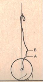 El trabajo correcto de los brazos en la segunda fase del halón describe una trayectoria casi recta como vimos en la trayectoria racional. Entre los puntos A y B, en esta trayectoria (Figura 8), que existe un considerable alejamiento hacia el frente de la vertical como resultado del trabajo en esa dirección de los brazos durante la ejecución de la segunda fase del halón. Este tipo de error es muy frecuente durante la primera etapa de los pesistas, el cual va desapareciendo en la medida que mejoran los resultados deportivos al no poder los atletas dominar los pesos en la palanqueta con los brazos tan alejados al frente; también en atletas de gran nivel vemos este trabajo incorrecto de los brazos, aunque menos grave como consecuencia de errores en la técnica cometidos en fases anteriores del ejercicio.