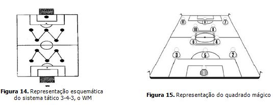 Para Parreira (2005), neste mesmo sistema WM existia o famoso “Quadrado Mágico”: que com o recuo do centro médio e o deslocamento dos meias para o meio do campo, havia um perfeito encaixe entre o W ofensivo e o M defensivo (Figura 15).