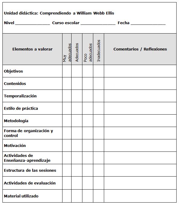 A partir de estos criterios curriculares se establecieron unos Criterios de Evaluación “didácticos”, formulados específicamente para esta unidad didáctica de Rugby escolar: