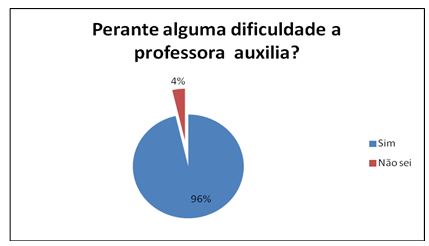 Figura 9. Resultado da questão 3: Perante as dificuldades encontradas, a professora intervém para auxilia-lo?