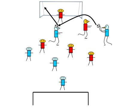 - Intentar marcar gol en la portería (cooperación) y evitar que el rival marque gol en tú portería (oposición). |