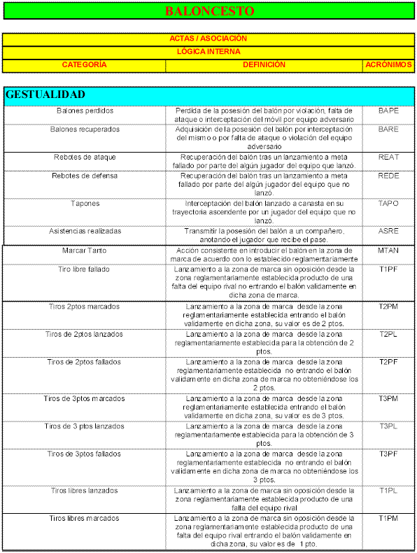 Cuantificar y analizar las principales gestualidades o técnicas y las incidencias reglamentarias que se dan en el desarrollo del juego