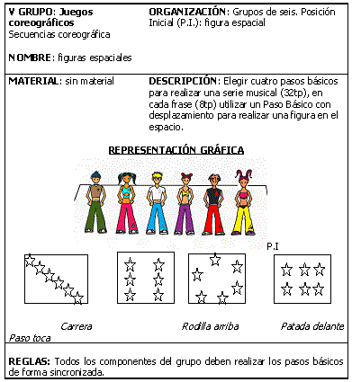 La ordenación de estas propuestas, se refleja en unas fichas estructuradas a título de ejemplo, en función de los cinco grupos estructurales de juegos específicos de esta actividad gimnástica y definidos en el apartado anterior.