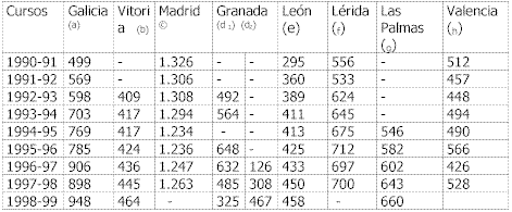 XUNTA (1992): Datos estadísticos do sistema universitario de Galicia: curso 1991-92. Consellería de Educación y Orientación Universitaria, Santiago de Compostela, 1992.