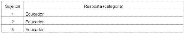 Nas respostas dadas a esta questão, pelos participantes desse estudo, a ênfase no perfil do educador assinalou, em seu conjunto, que este reunia as maiores condições para se trabalhar com as crianças. Porém, é imprescindível lembrar que o educador não é necessariamente professor e este, por sua vez não é também, necessariamente, educador, sendo que todo professor pode ser educador, mas o inverso não é verdadeiro. Entretanto, nesta caso em questão a figura que emerge é a do professor como educador.