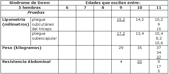 Diagnóstico del desarrollo físico en escolares con Síndrome de Down y niños de aulas integrales |
