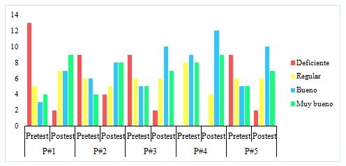 Gráfica 1. Comparaciones entre los resultados del pretest y el postest en cada una de las pruebas